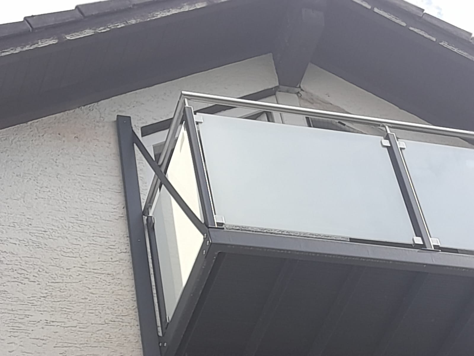 Kleiner Anbaubalkon aus Stahl mit Glasfüllung – ideal für Einfamilienhäuser