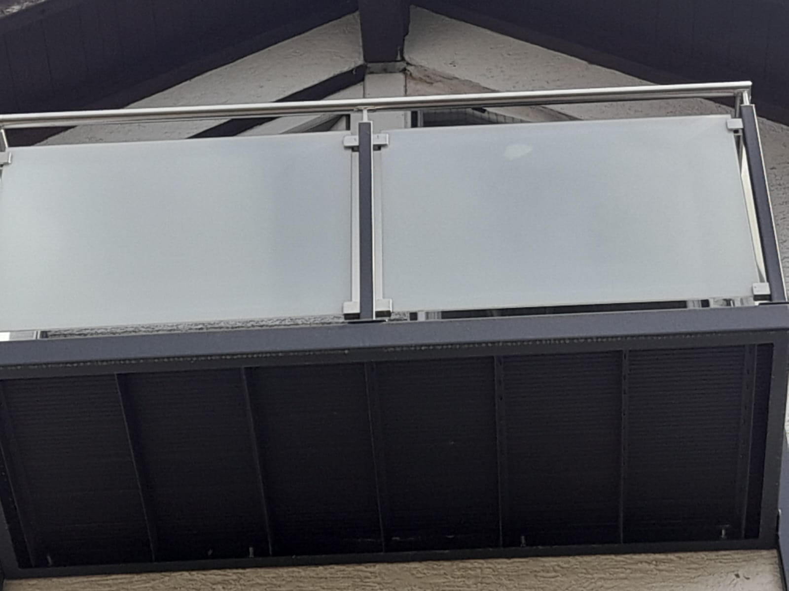 Detailansicht – Balkon aus Stahl mit Milchglasfüllung, gefertigt von Bartczak Geländer